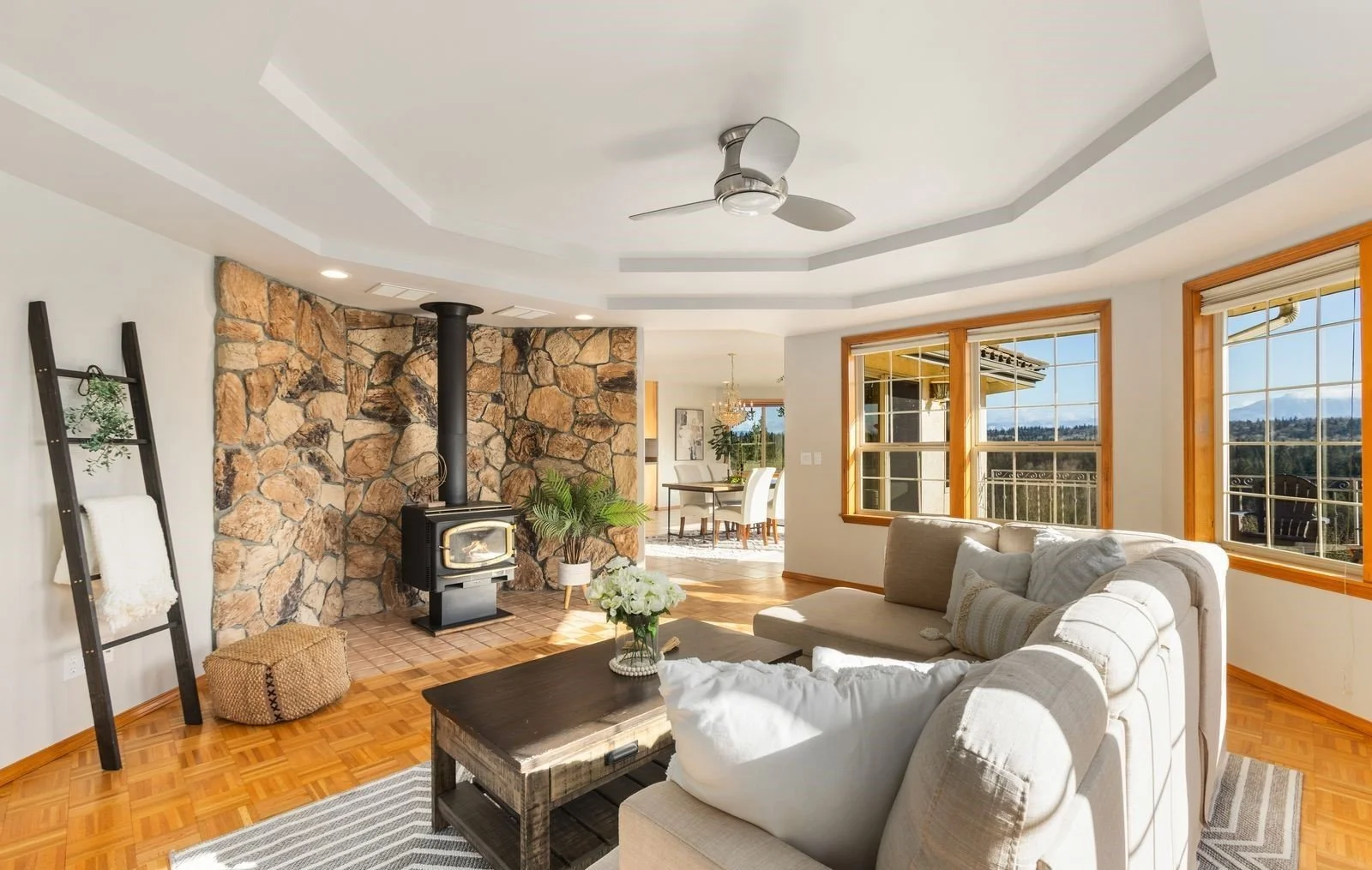 TIMELESS DESIGN & UNFORGETTABLE VIEWS | VISTA LA GRANDE - This custom-built rambler with a daylight basement has been thoughtfully designed and beautifully maintained, offering timeless appeal and everyday comfort. Ideally situated in the highly sought-after Dutch Hill community, known for its peaceful setting and scenic surroundings.From the moment you step inside, expansive windows frame the ever-changing Cascade backdrop, filling the open-concept living spaces with natural light and creating a seamless connection to the beauty outside. Brand new LVT flooring and plush carpet add a fresh, modern touch throughout. Whether hosting gatherings or enjoying a quiet morning, the spacious deck becomes an extension of the home—perfect for taking in sweeping mountain vistas and peaceful farmland below. The main-level primary suite is a private retreat, complete with ensuite bath, generous walk-in closet, and direct access to an additional deck for those serene start or end-of-day moments. Downstairs, the finished daylight basement expands the home’s livability with three additional bedrooms—one with an attached bath-and a versatile bonus space ideal for movie nights, working from home, or hosting guests with private entry. An additional washer/dryer hookup and roughed in plumbing enhance the space’s flexibility. Thoughtful features include a heat pump, central vacuum & generator-ready setup. A rare blend of comfort, functionality, and natural beauty—an exceptional place to call home.